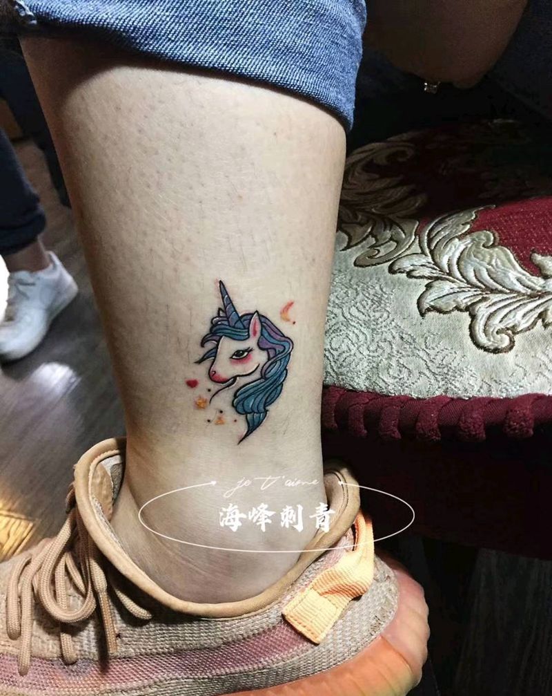 当前位置: 首页 >甘肃省酒泉市纹身店-海峰刺青纹身图案>一个神奇的萌宠'独角兽纹身图片_腿部水彩纹身图案