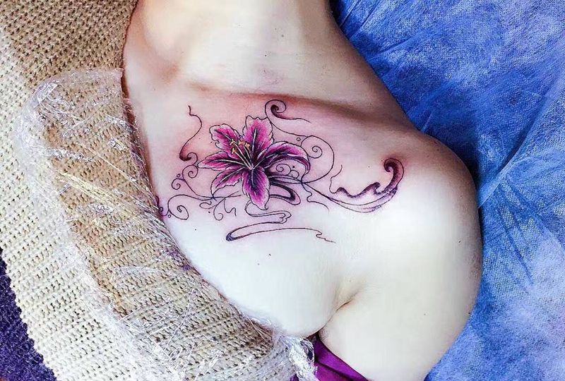 • 女性大花胸纹身_43张霸气漂亮的女性大花胸纹身图案作品