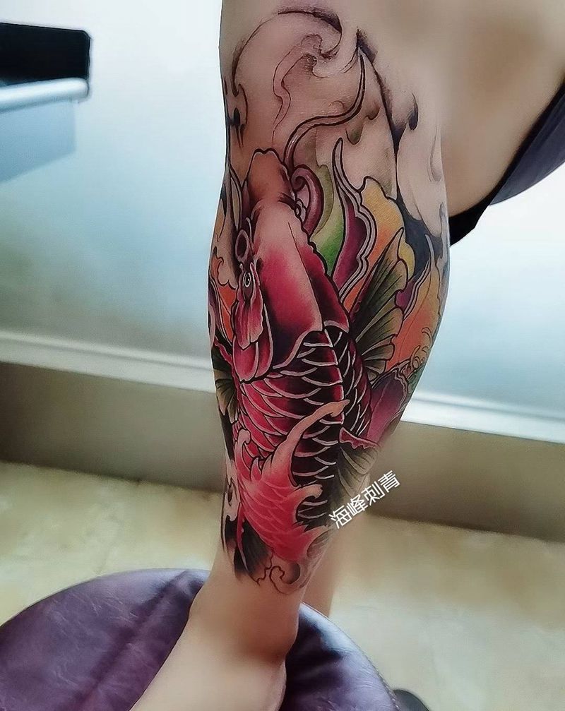 鱼纹身图片_腿部纹身图案