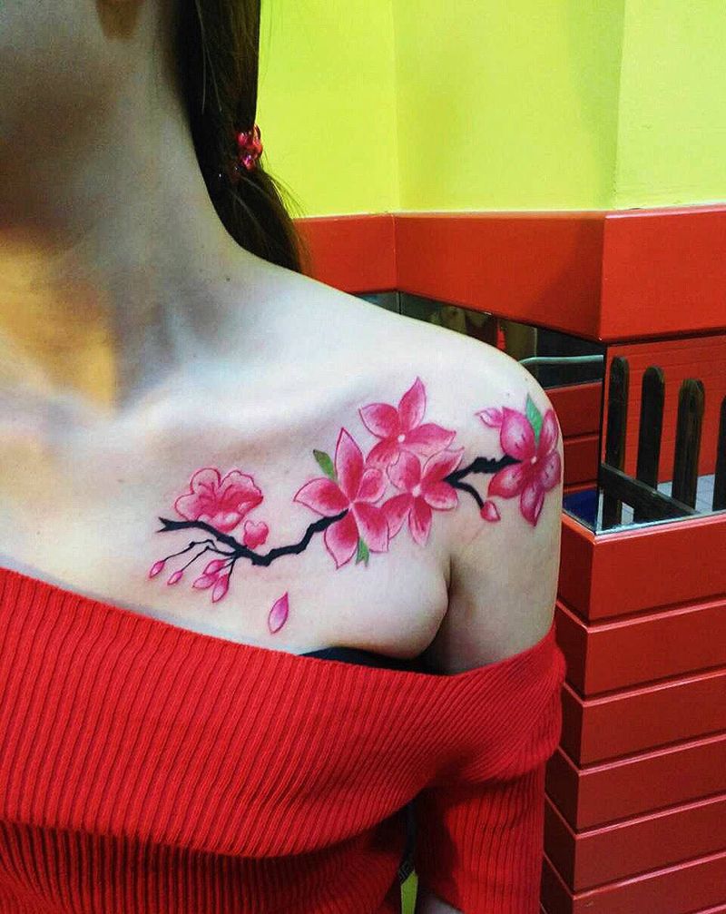 • 女性大花胸纹身_43张霸气漂亮的女性大花胸纹身图案作品