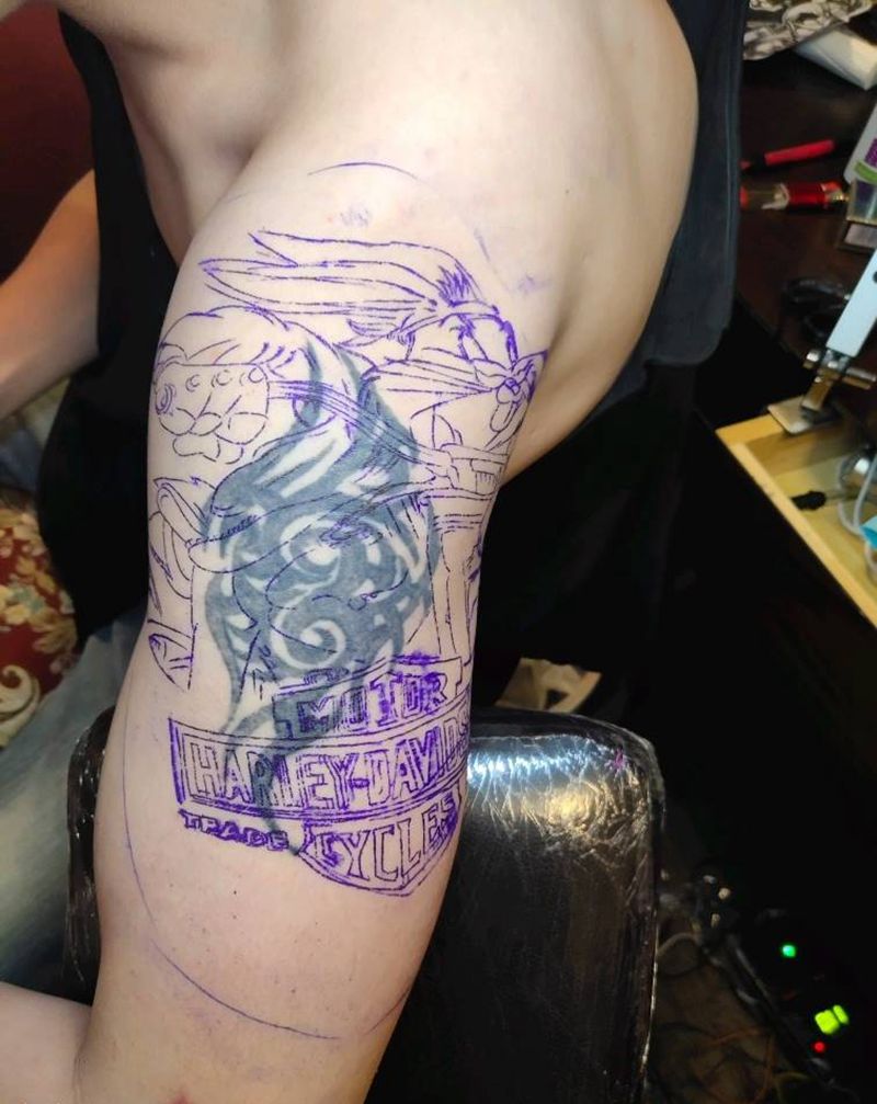 • H老虎花臂手稿图片 老虎个性纹身