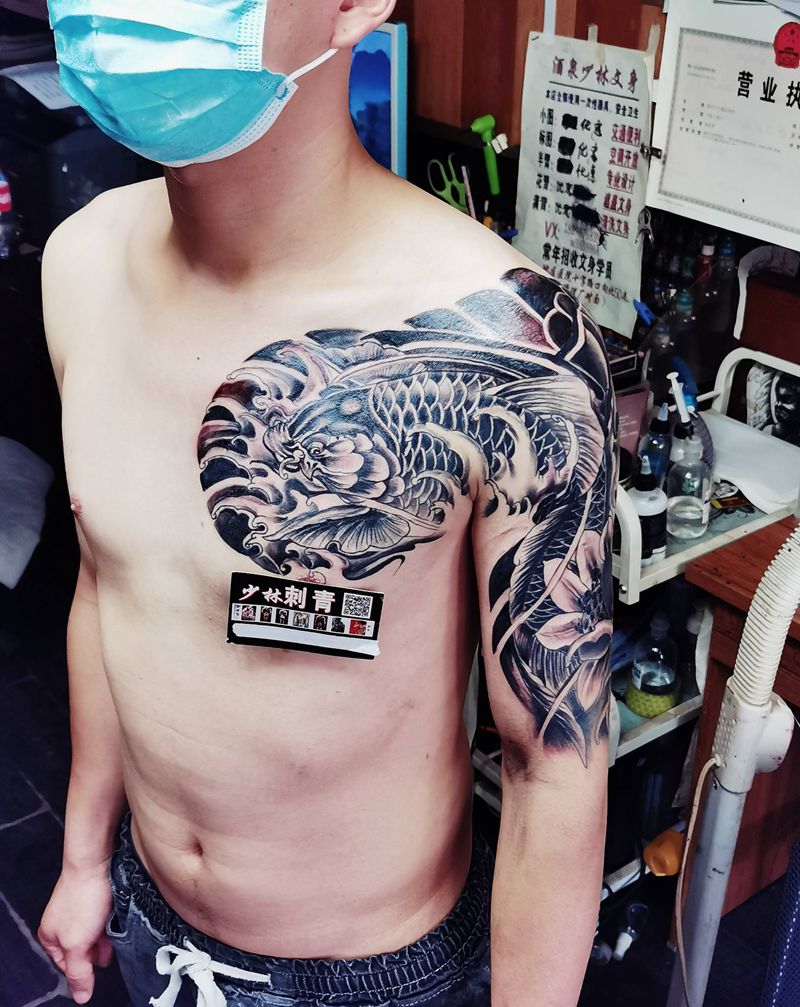 当前位置: 首页 >甘肃省酒泉市纹身店-酒泉少林刺青纹身图案>半胛纹身图片_手臂胸部新传统纹身图案