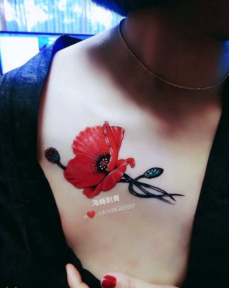 • 女性大花胸纹身_43张霸气漂亮的女性大花胸纹身图案作品