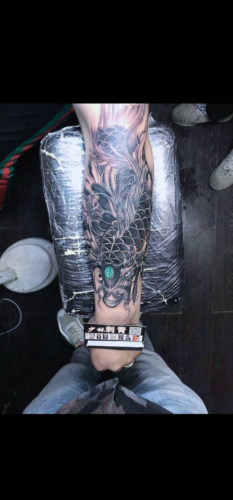 • T网红王老大花腿龙纹身图片_腿部新传统纹身图案