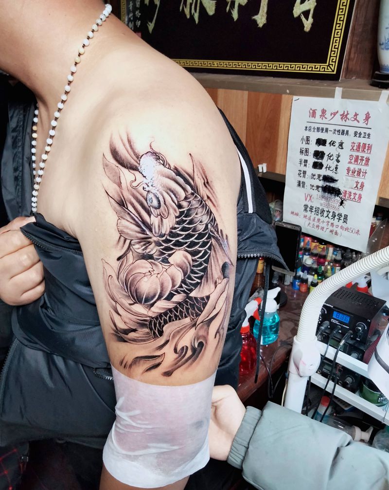 当前位置: 首页 >甘肃省酒泉市纹身店-酒泉少林刺青纹身图案>锦鲤纹身图片_手臂老传统纹身图案