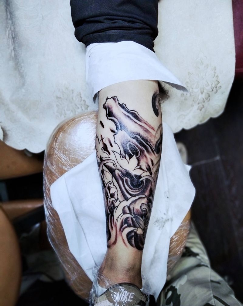 • T网红王老大花腿龙纹身图片_腿部新传统纹身图案