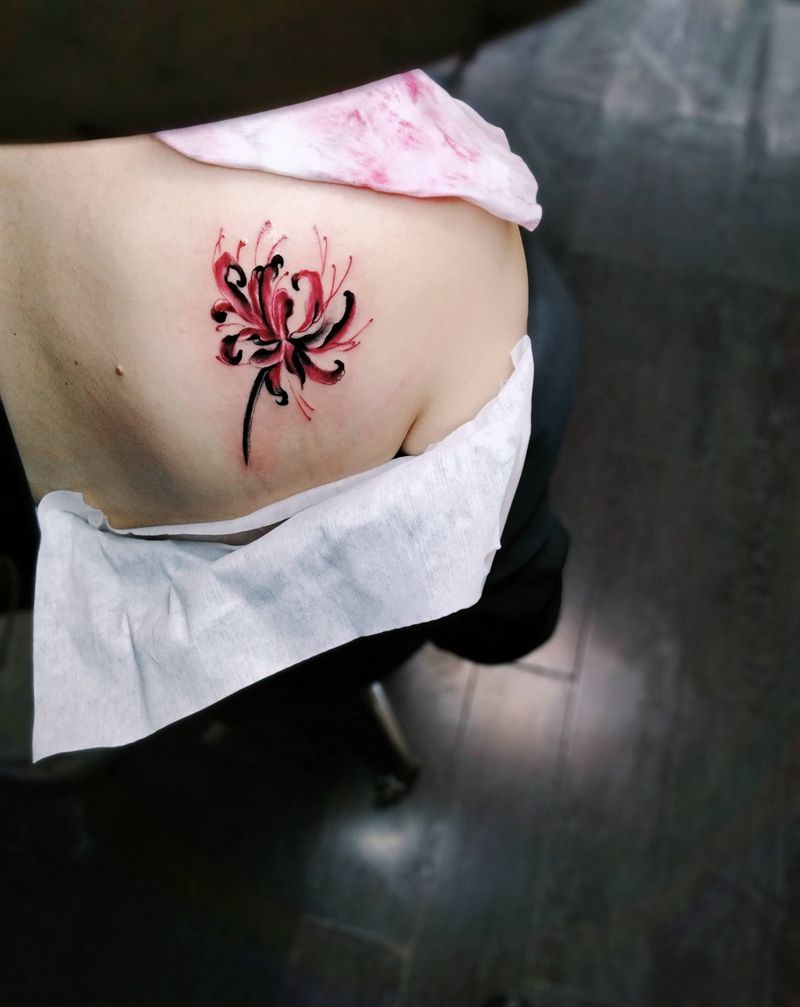 当前位置: 首页 >甘肃省酒泉市纹身店-酒泉少林刺青纹身图案>彼岸花纹身图片_肩部老传统纹身图案