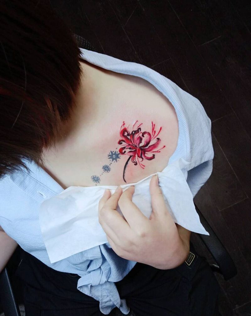 当前位置: 首页 >甘肃省酒泉市纹身店-酒泉少林刺青纹身图案>彼岸花纹身图片_胸部手臂新传统纹身图案