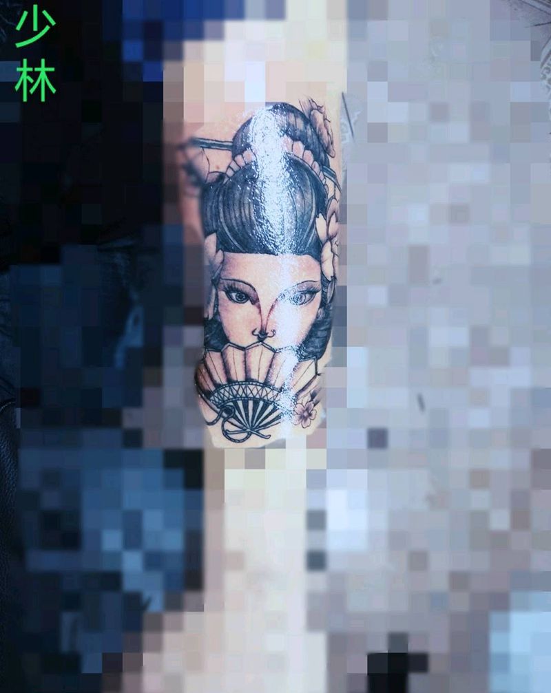 艺伎人物类纹身图片_手臂腿部老传统欧美写实纹身图案