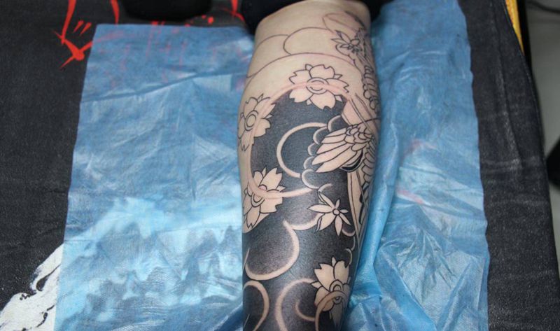 • T网红王老大花腿龙纹身图片_腿部新传统纹身图案
