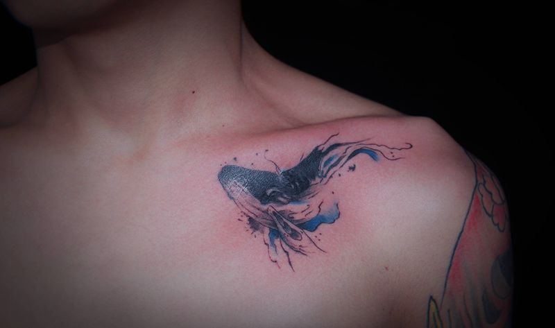 遮盖纹身图片_胸部纹身图案