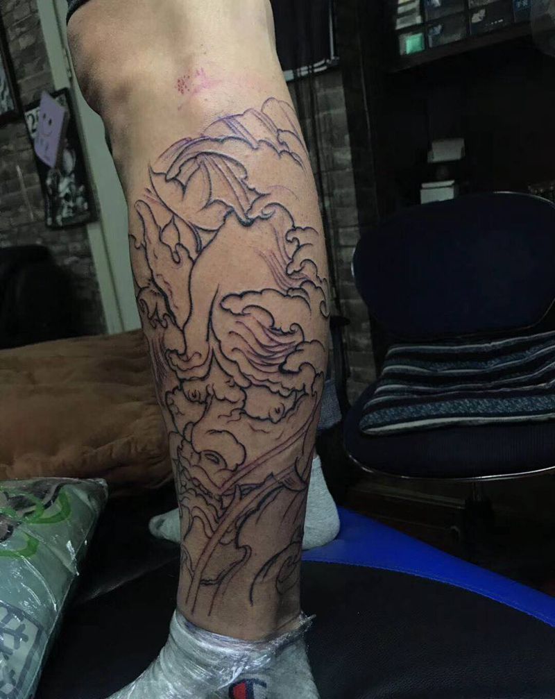 • T网红王老大花腿龙纹身图片_腿部新传统纹身图案