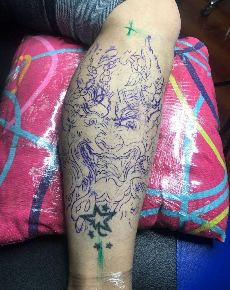 当前位置: 首页 >青海省西宁市纹身店-海洋纹身工作室纹身图案>小腿般若遮盖、纹身图片