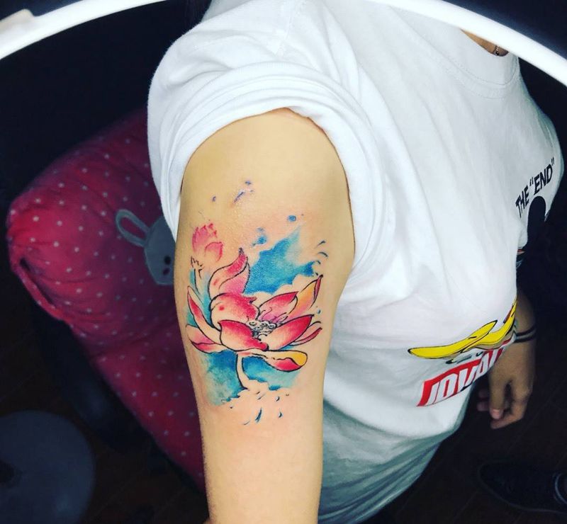 当前位置: 首页 >青海省西宁市纹身店-海洋纹身工作室纹身图案>莲花、彩色纹身图片