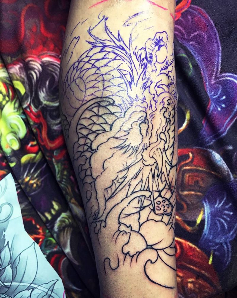 当前位置: 首页 >青海省西宁市纹身店-海洋纹身工作室纹身图案>小腿龙头线条纹身图片