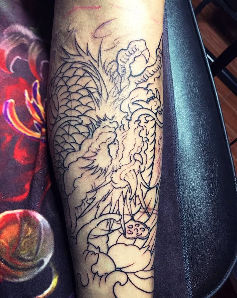 当前位置: 首页 >青海省西宁市纹身店-海洋纹身工作室纹身图案>小腿龙头线条纹身图片