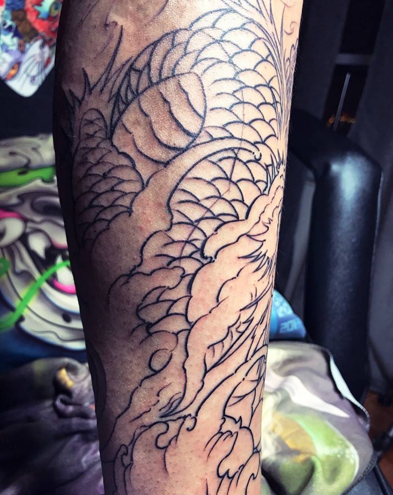 当前位置: 首页 >青海省西宁市纹身店-海洋纹身工作室纹身图案>小腿龙头线条纹身图片