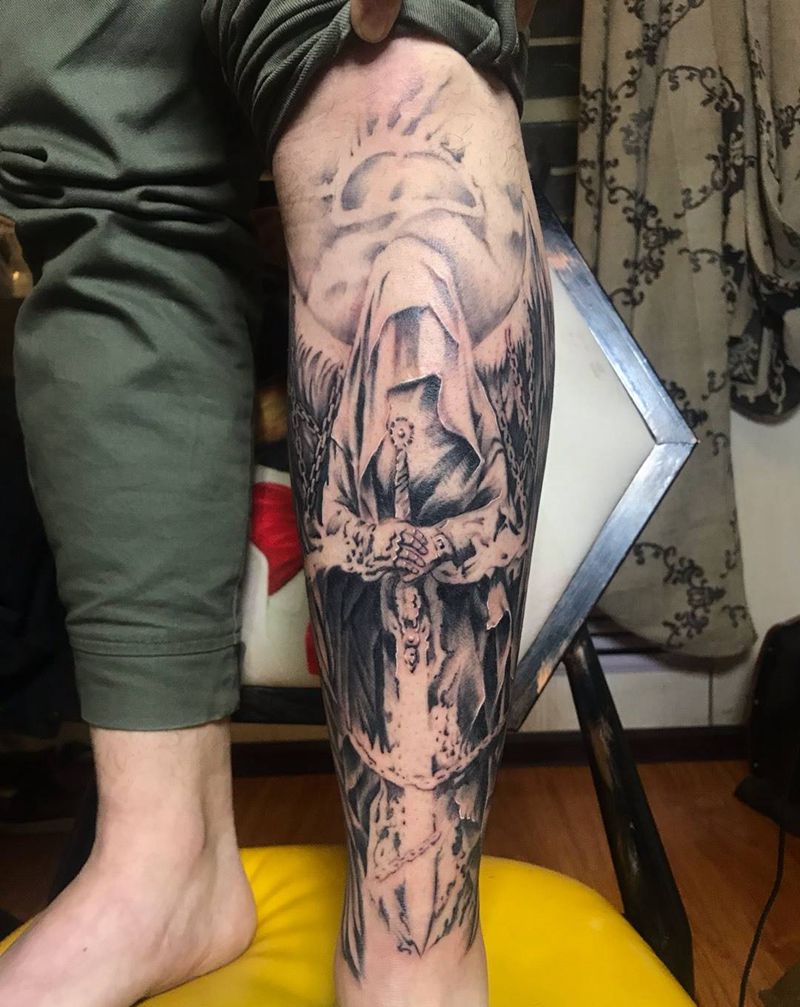 • T网红王老大花腿龙纹身图片_腿部新传统纹身图案