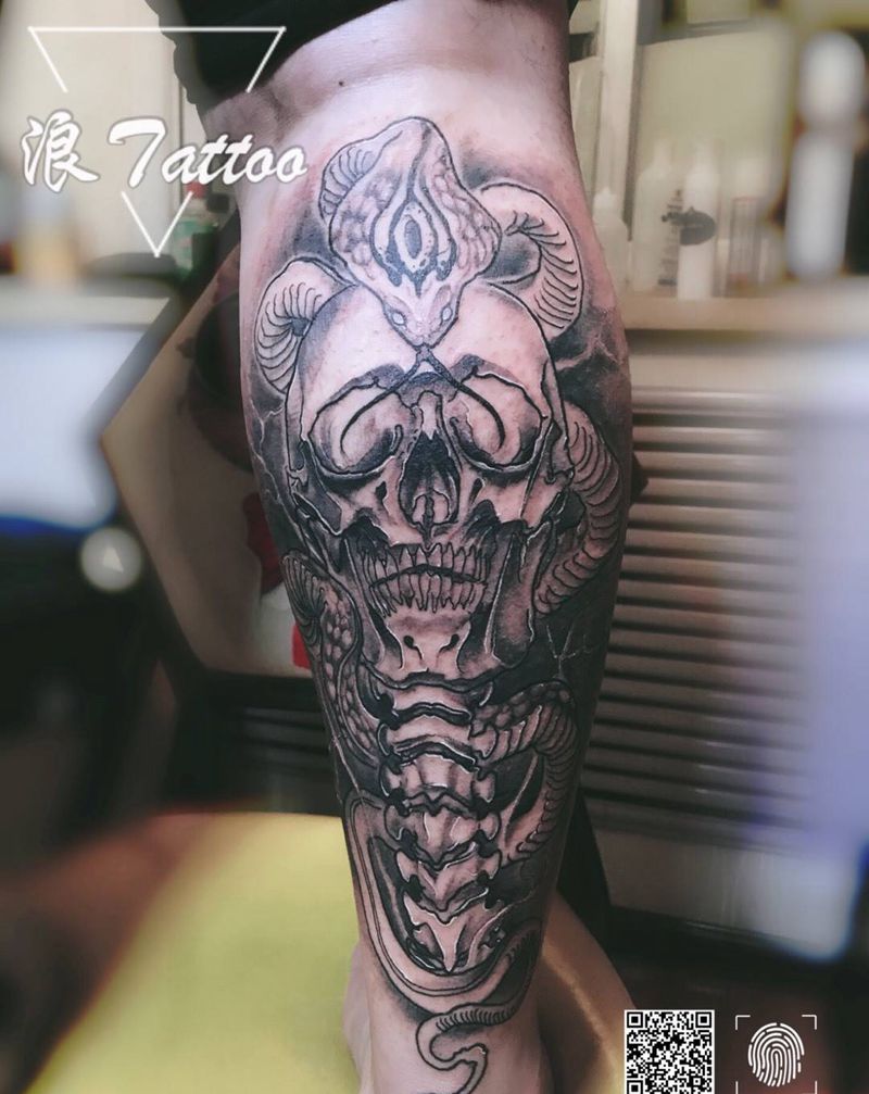 当前位置: 首页 >甘肃省定西市纹身店-浪Tattoo纹身图案>小腿骷髅纹身图片