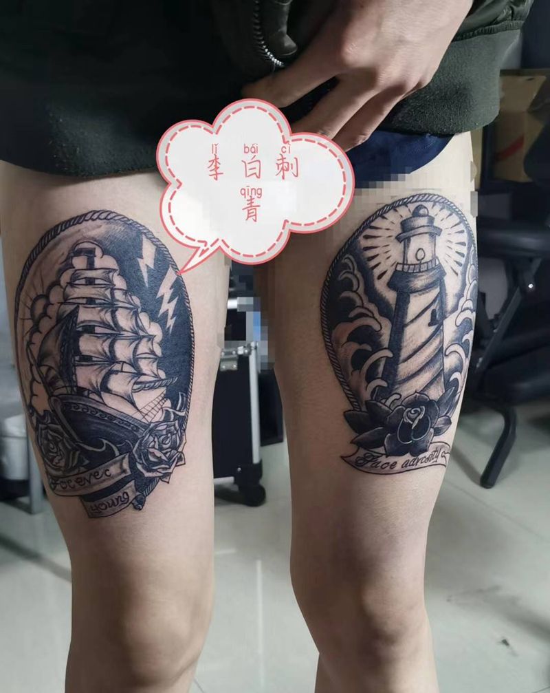 当前位置: 首页 >青海省西宁市纹身店-沐雅刺青纹身图案>帆船与灯塔纹身图片_腿部Old School纹身图案