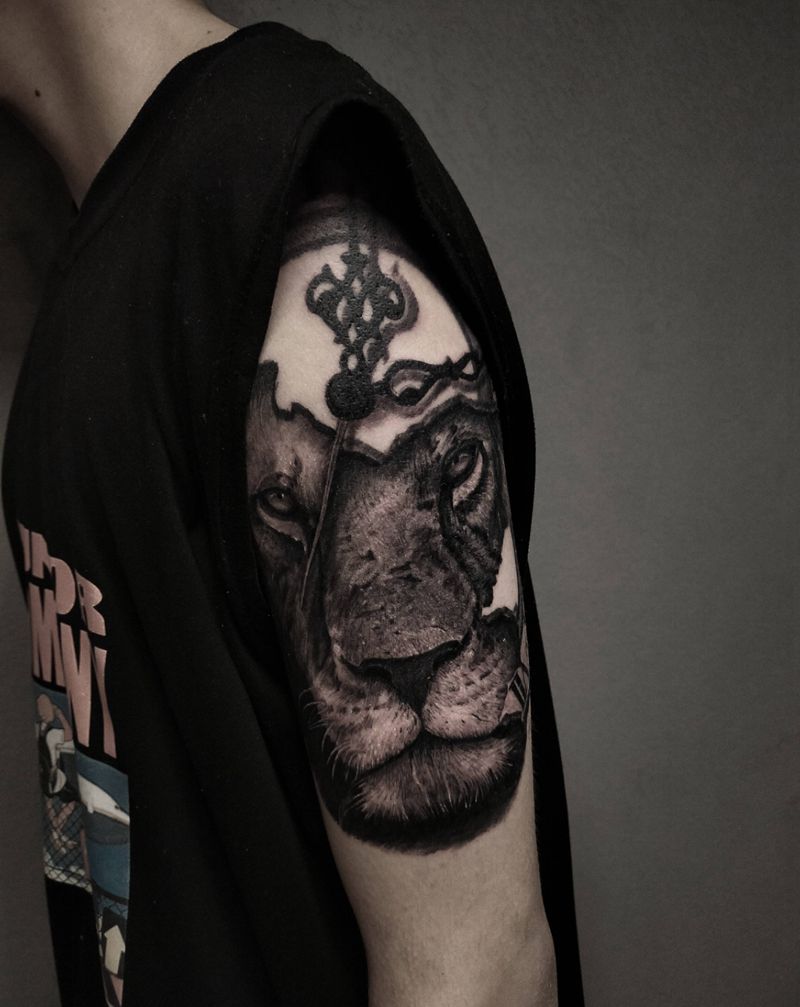 当前位置: 首页 >甘肃省定西市纹身店-雕艺刺客纹身图案>狮子王纹身图片_手臂欧美写实纹身图案