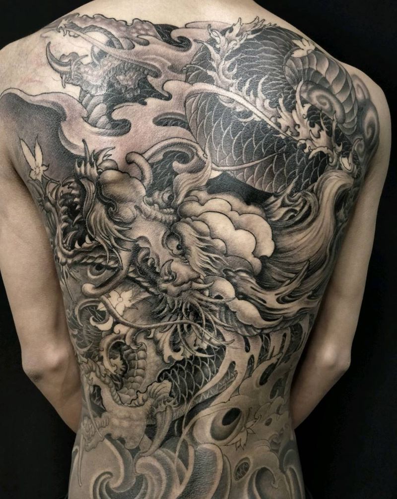 • T云龙九郎纹身图片_背部老传统云龙九郎纹身图案