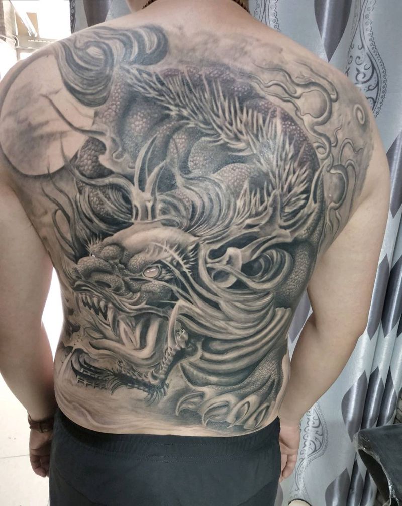 • T云龙九郎纹身图片_背部老传统云龙九郎纹身图案