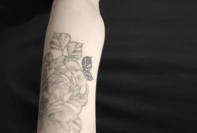 素花翻新纹身图片_手臂点刺纹身图案