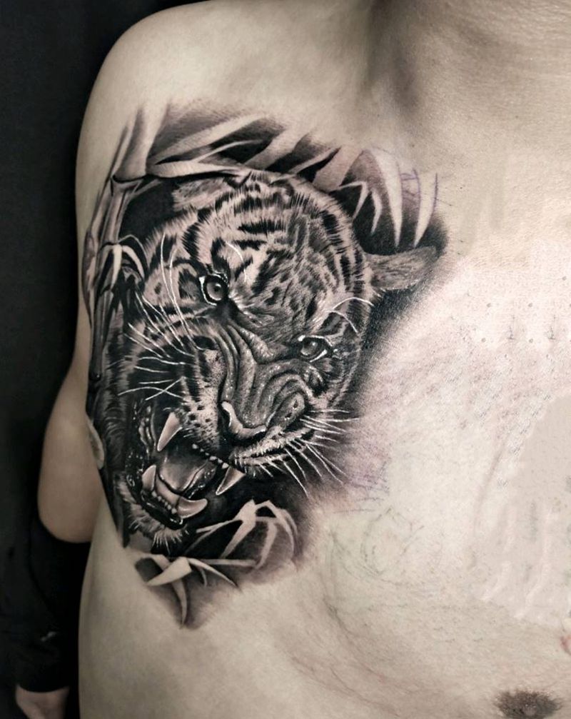 写实老虎纹身图片_胸部欧美写实纹身图案