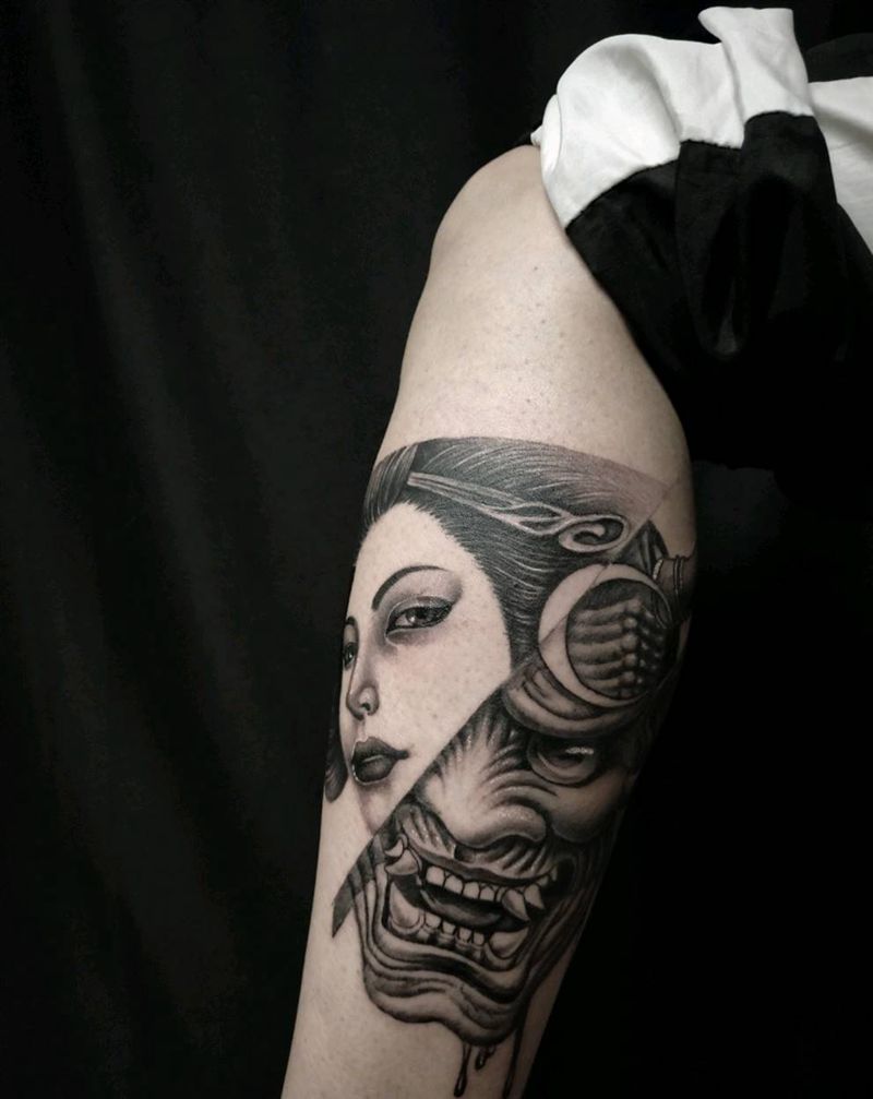 般若艺姬纹身图片_腿部新传统纹身图案