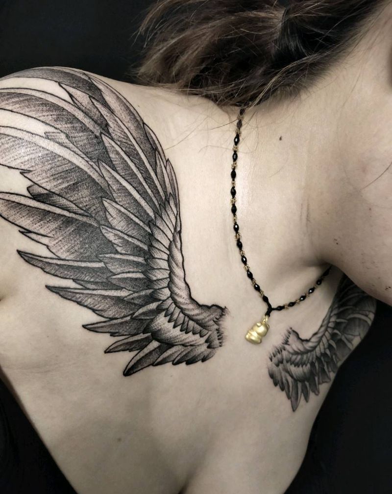 点刺翅膀纹身图片_颈部点刺纹身图案