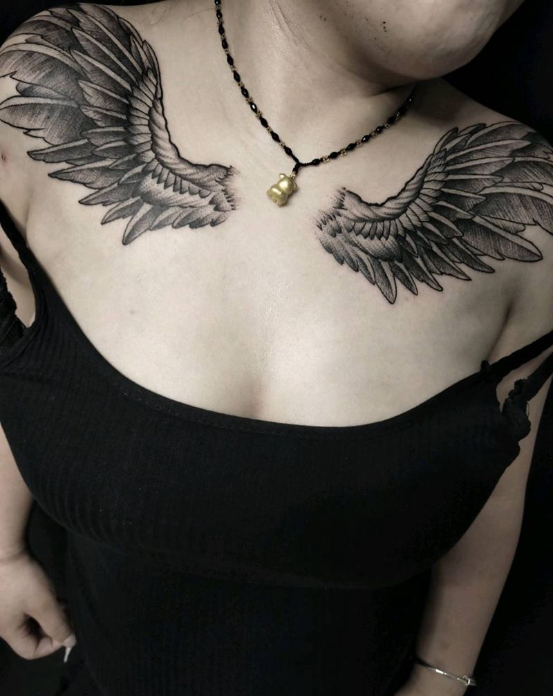 点刺翅膀纹身图片_颈部点刺纹身图案