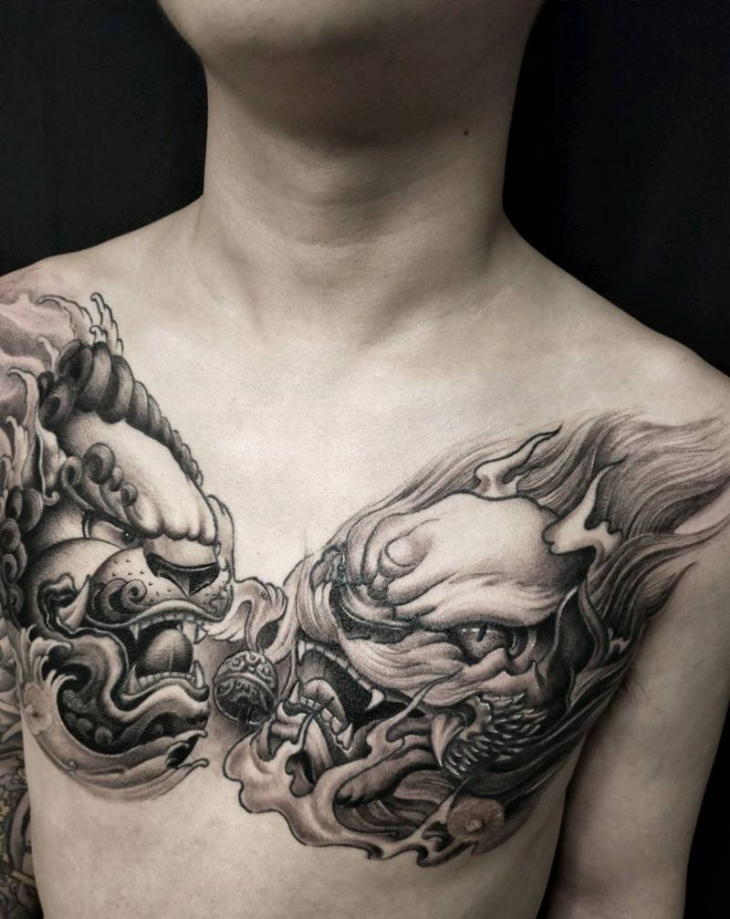 当前位置: 首页 >甘肃省定西市纹身店-雕艺刺客纹身图案>灵动双狮纹身图片_胸部新传统纹身图案