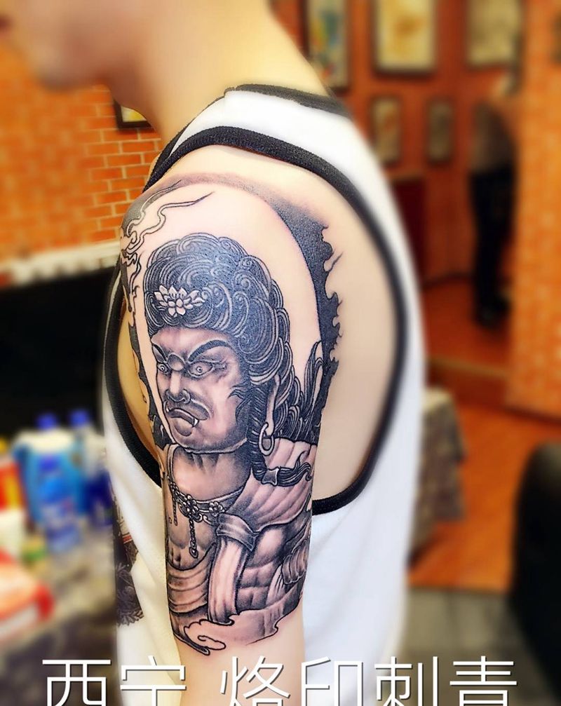 当前位置: 首页 >青海省西宁市纹身店-西宁 烙印刺青纹身图案>不动明王纹身图片_成品肩部传统鬼神宗教纹身图案