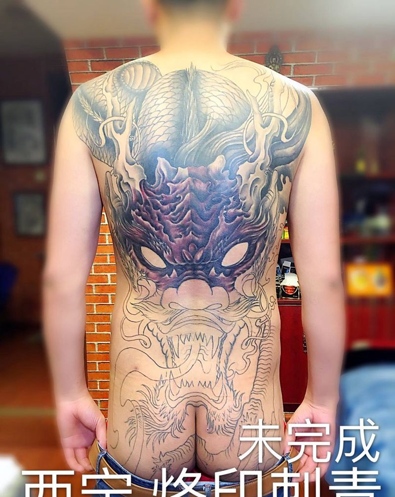 黑灰满背纹身图案