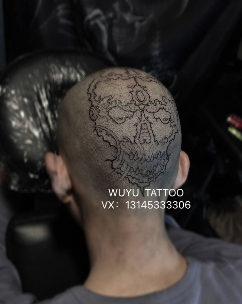 嘎巴拉纹身图片_新传统手绘 爆头纹身图案