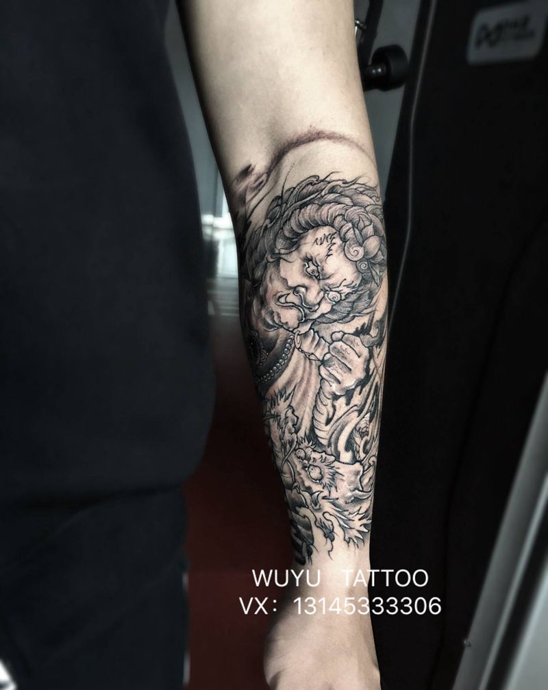 当前位置: 首页 >青海省西宁市纹身店-忆青春纹身工作室纹身图案>不动明王遮盖纹身图片_手臂新传统纹身图案