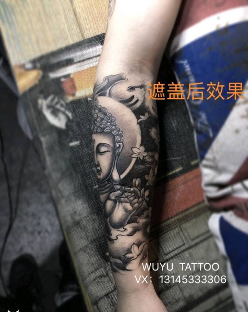 一念之间 佛与魔纹身图片_手臂新传统遮盖纹身图案