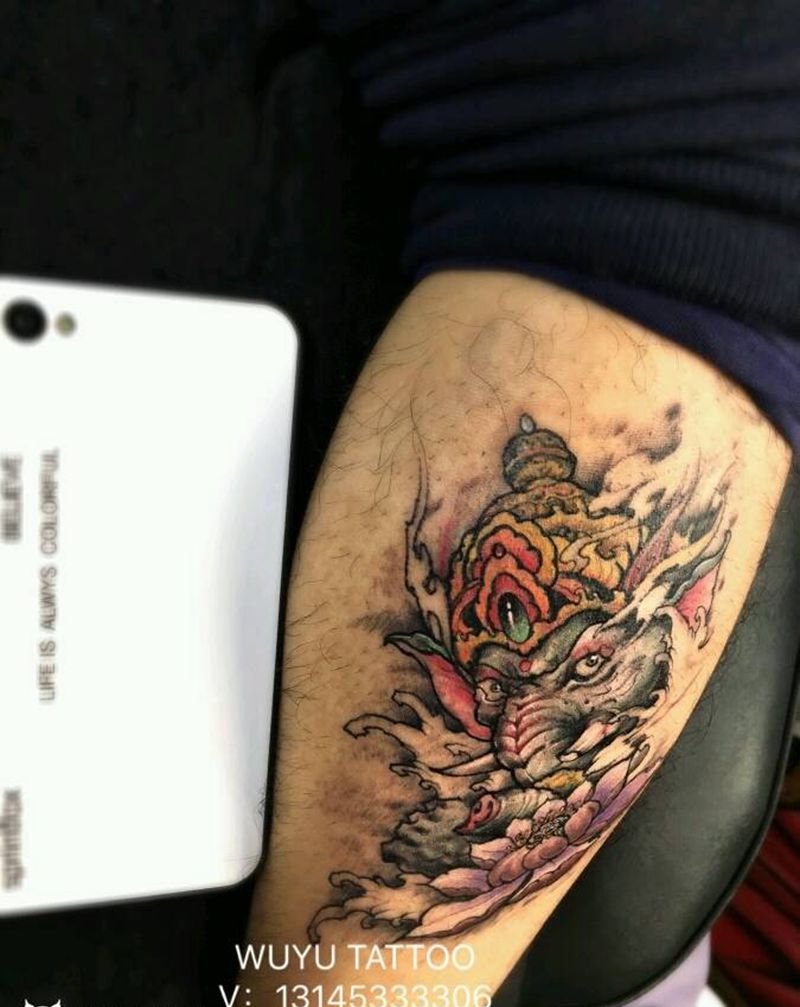 当前位置: 首页 >青海省西宁市纹身店-忆青春纹身工作室纹身图案>象神纹身图片_腿部新传统纹身图案