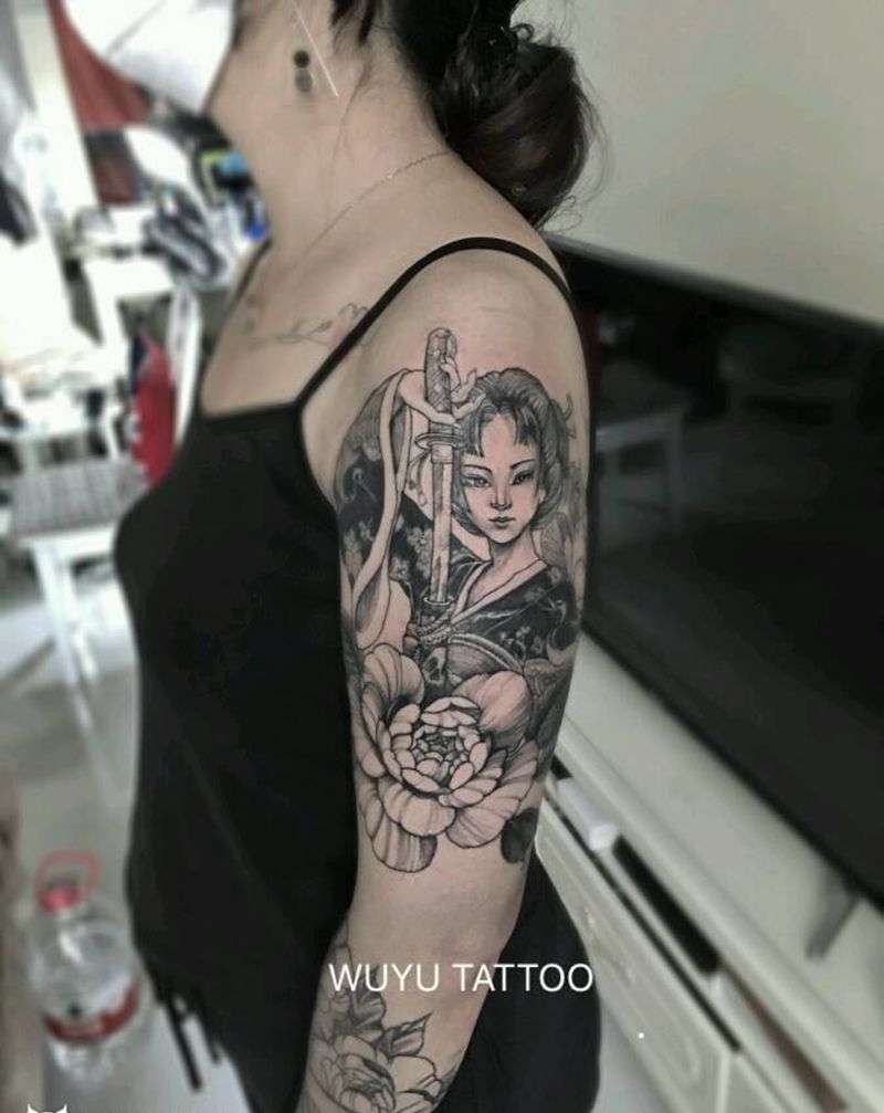 武妓纹身图片_手臂新传统纹身图案