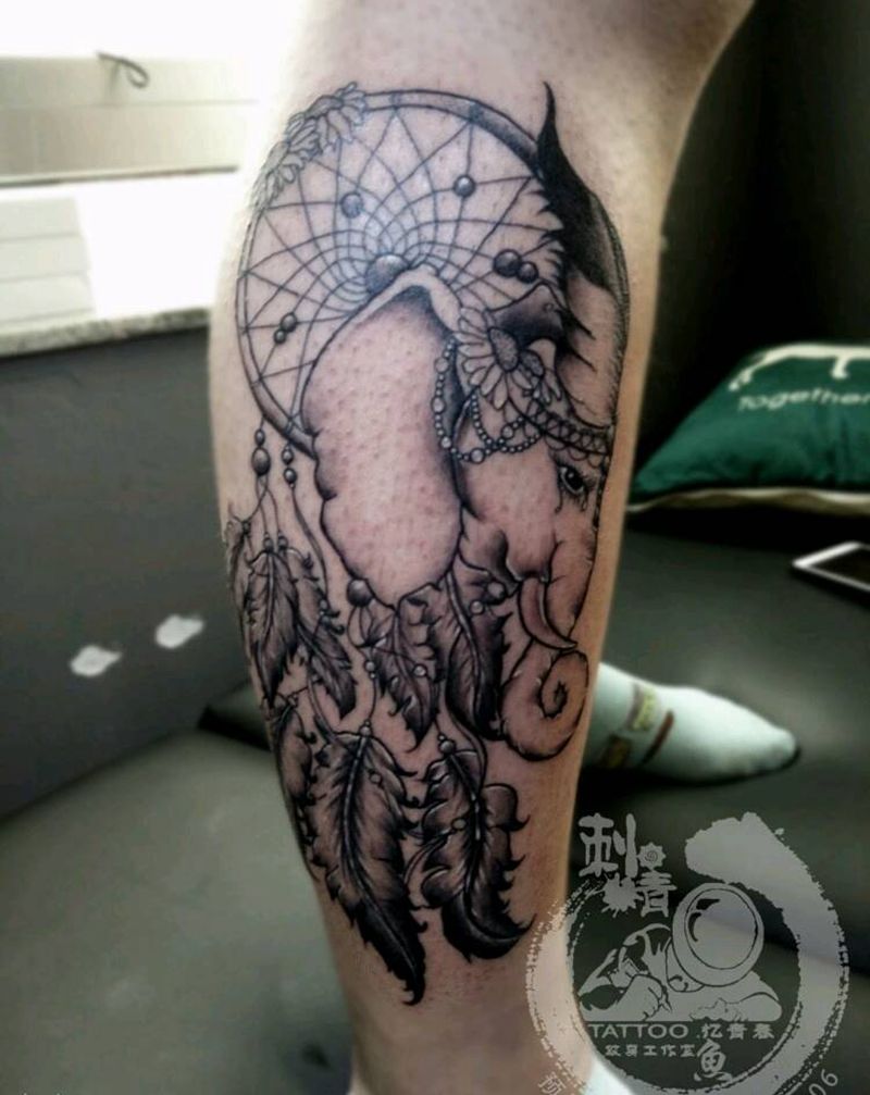 捕梦网加大象纹身图片_腿部欧美纹身图案