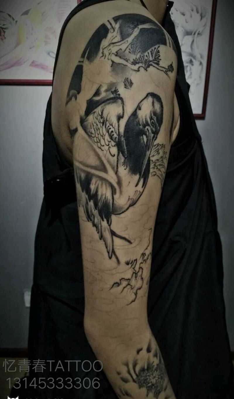 当前位置: 首页 >青海省西宁市纹身店-忆青春纹身工作室纹身图案>仙鹤题材花臂纹身图片_手臂传统纹身图案