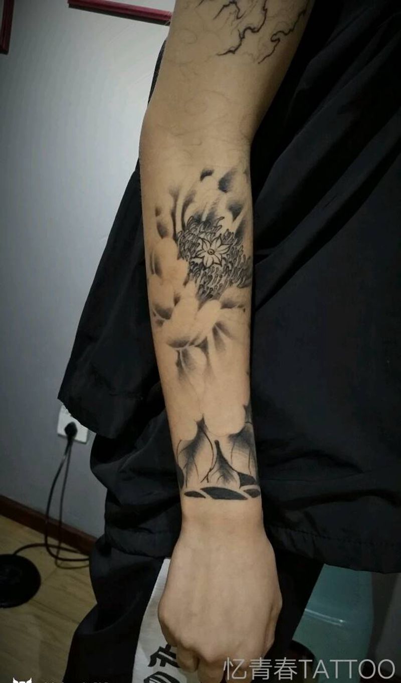 一组15张莲花纹身手