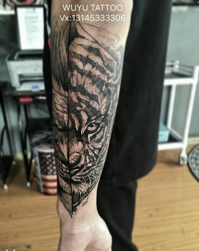 当前位置: 首页 >青海省西宁市纹身店-忆青春纹身工作室纹身图案>小丑与老虎纹身图片_手臂点刺纹身图案