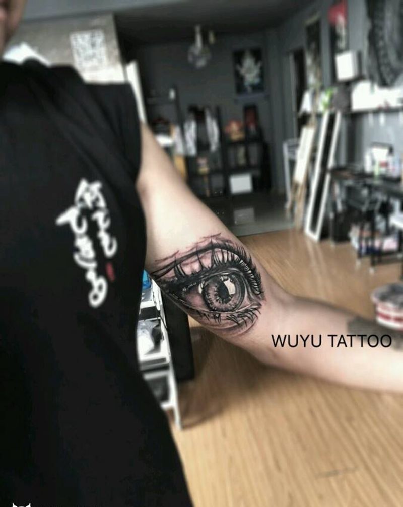 当前位置: 首页 >青海省西宁市纹身店-忆青春纹身工作室纹身图案>写实眼睛纹身图片_手臂欧美写实纹身图案