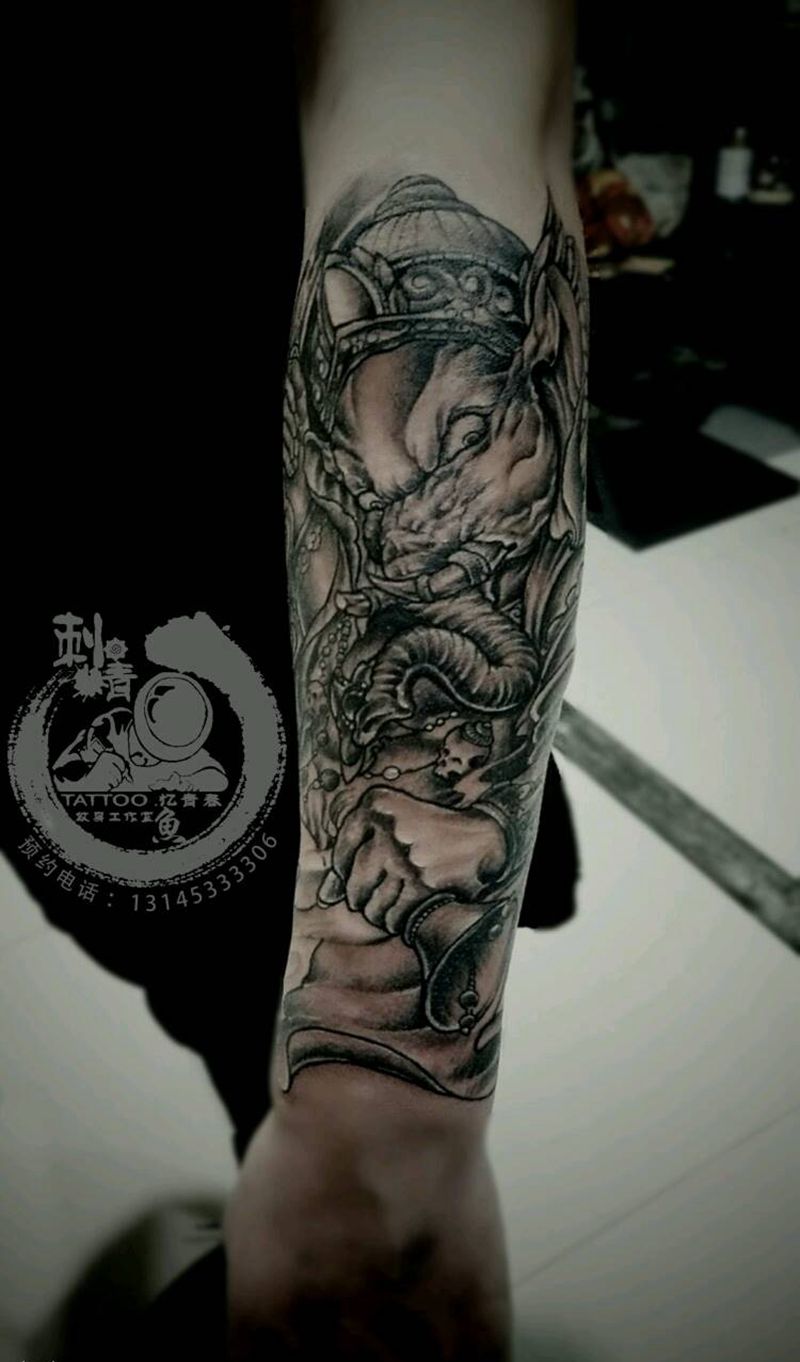 当前位置: 首页 >青海省西宁市纹身店-忆青春纹身工作室纹身图案>象神纹身图片_手臂传统成品纹身图案
