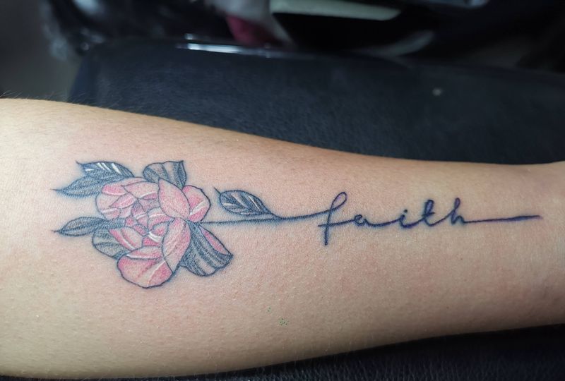 素花+字母纹身图片_手臂花体字点刺花 字纹身图案