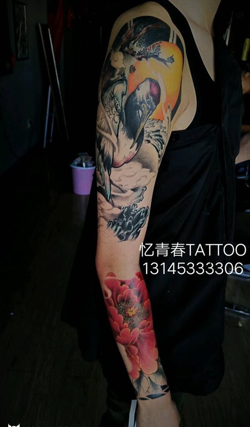 当前位置: 首页 >青海省西宁市纹身店-忆青春纹身工作室纹身图案>仙鹤牡丹题材纹身图片_手臂传统原创纹身图案