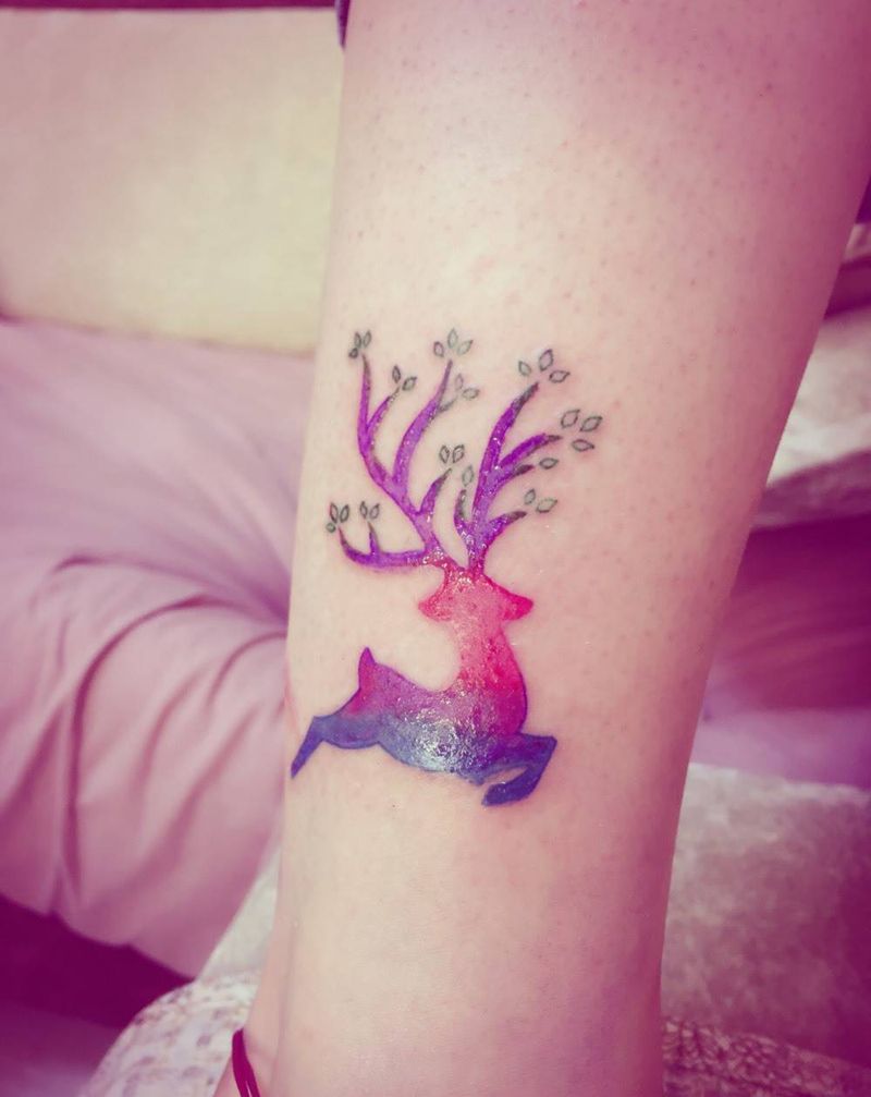 当前位置: 首页 >青海省西宁市纹身店-荆棘刺青処纹身图案>彩色小鹿纹身图片