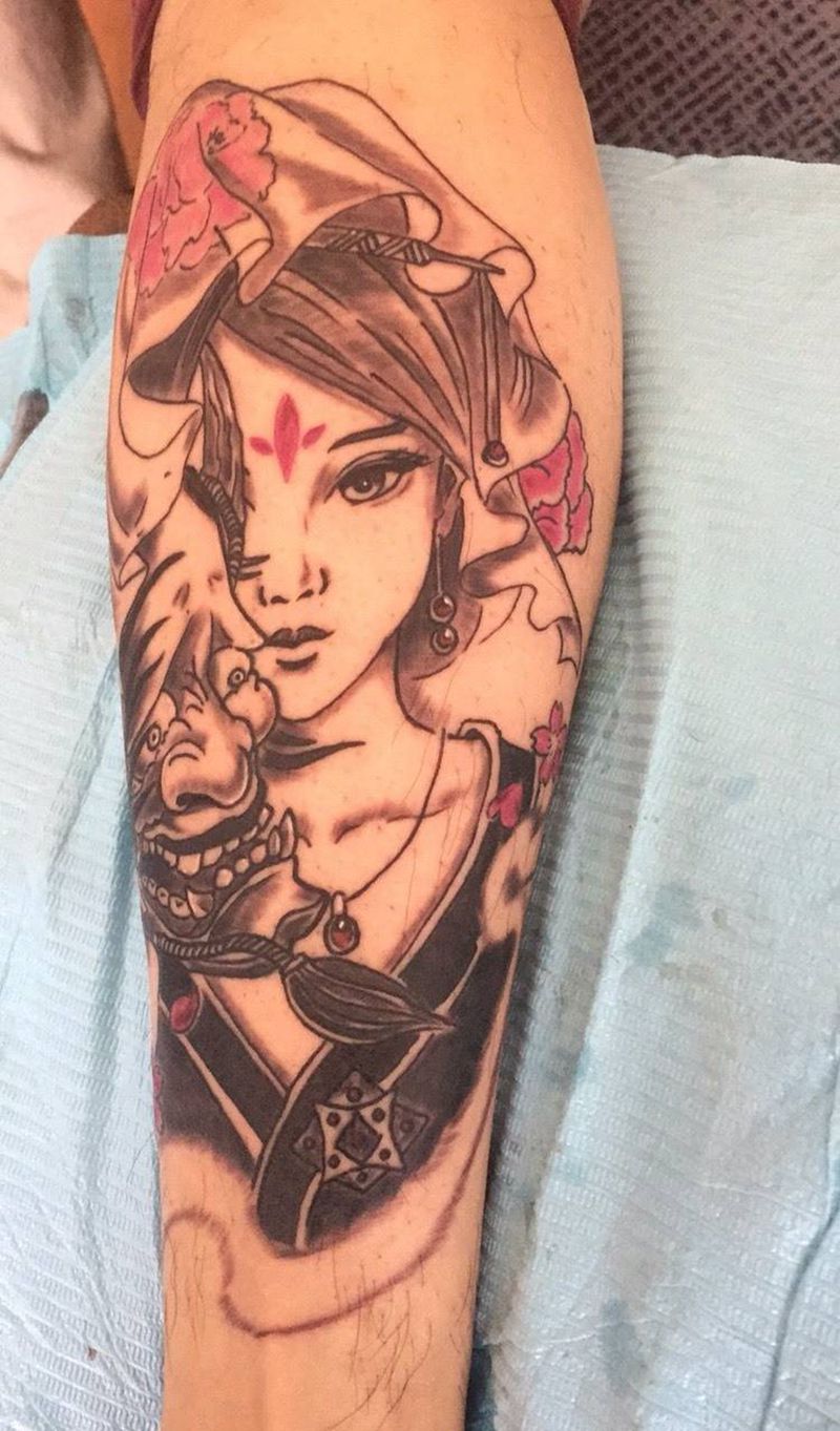 小腿艺伎般若纹身图片